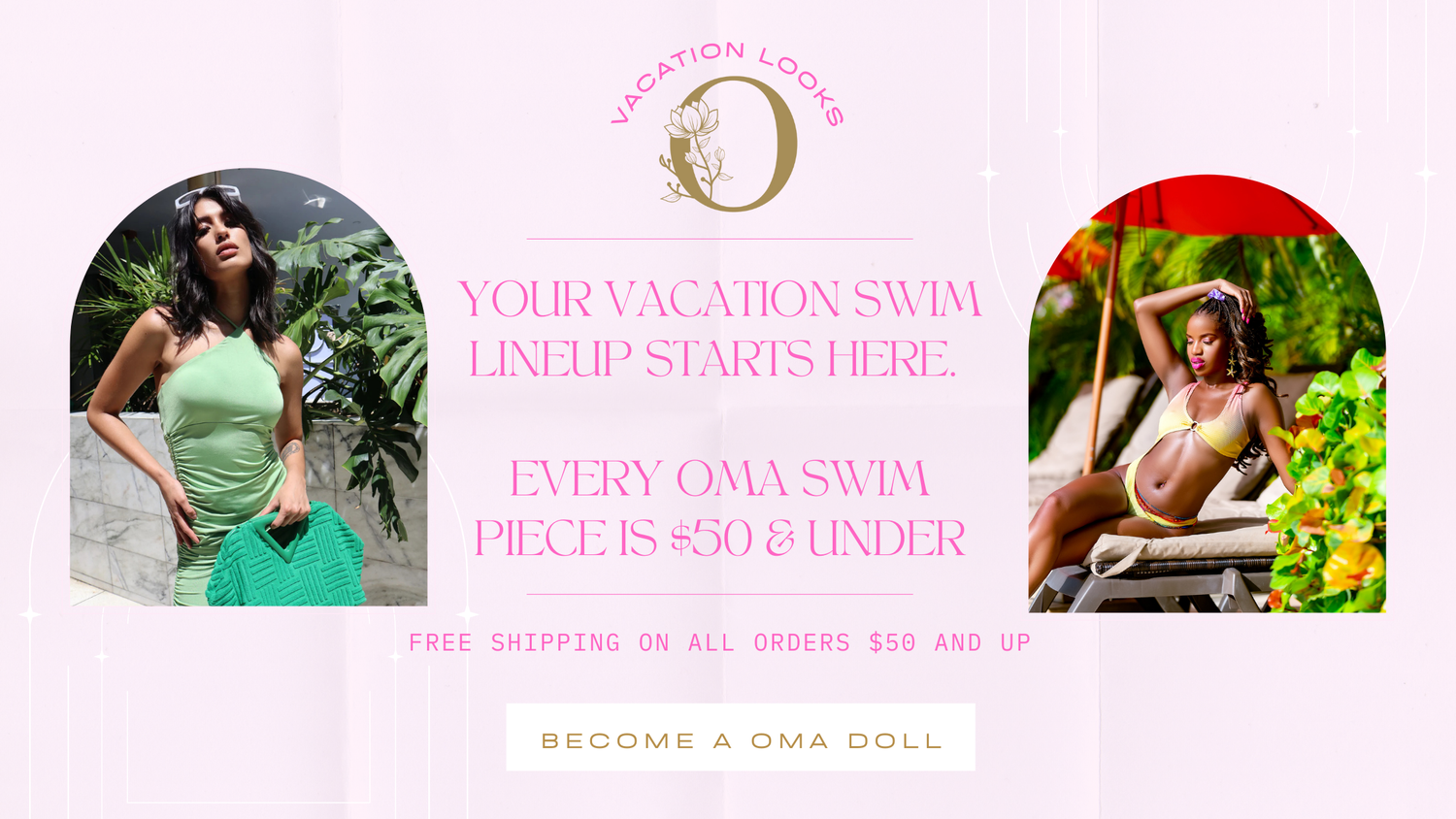 Shop OMA Swim Dolls! Curated swimwear for every destination, all $50 & under. Your vacation swim lineup starts here with us. đ´